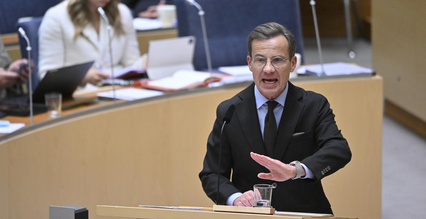Statsminister Ulf Kristersson (M) inleder dagens partiledardebatt i riksdagen, den sista innan sommaren. Han anklagar Socialdemokraterna för att ha tagit den största vänstersvängen ”sedan löntagarfondernas dagar på 70- och 80-talen”. Han varnar för att det ”bara är början”.