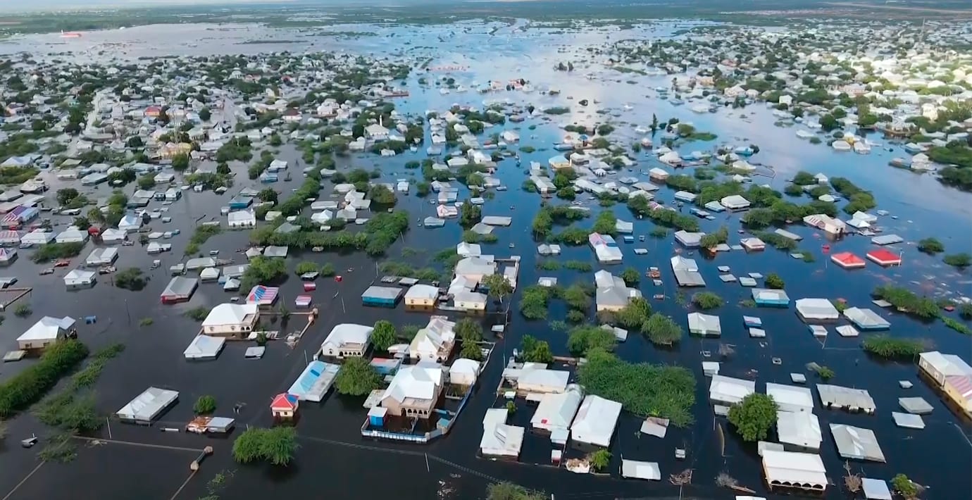Översvämningen är resultatet av ett enormt skyfall som slagit till efter den värsta torkan på 40 år, enligt FN-organet OCHA. Den torra marken absorberar inte vatten lika bra, vilket resulterar i hastiga översvämningar.