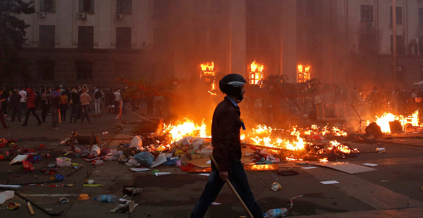 Enligt ukrainska Kyiv Post användes den eldhärjade fackföreningsbyggnaden som tillhåll för proryska demonstranter.