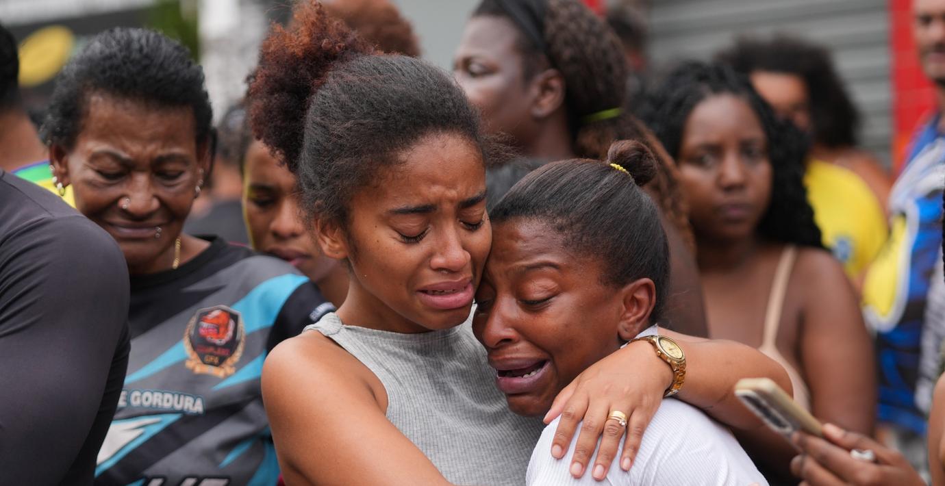 Bilder från kåkstaden Complexo da Penha, där räden skedde, visar hur kroppar har lagts upp på gatan och anhöriga som samlats för att sörja.
