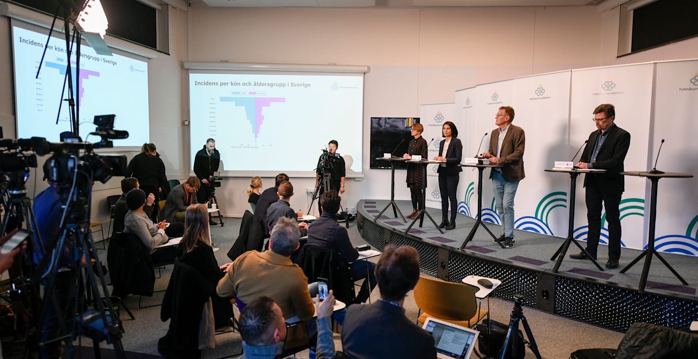 Under pressträffen ber också Taha Alexandersson från Socialstyrelsen svenskarna att stanna hemma i påsk.