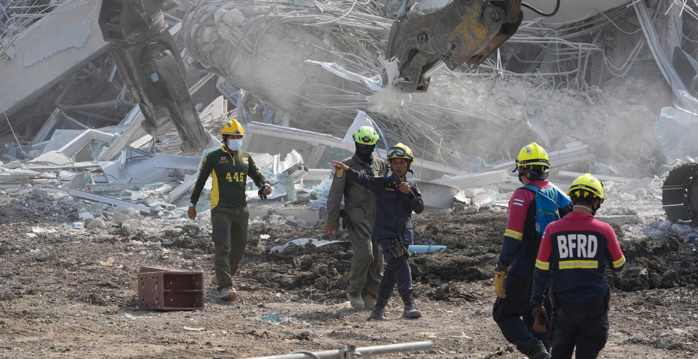 400 personer arbetar på platsen och totalt saknas 96 personer. Tusentals kände av jordbävningen i Bangkok trots att skalvet hade sitt epicentrum i den myanmarska staden Mandalay långt därifrån. Där är dödstalet betydligt högre.