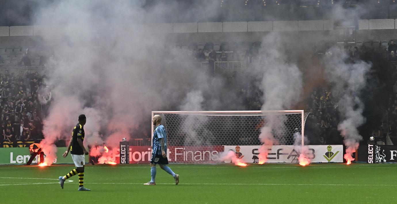 Huliganvåldet bröt ut när publik på AIK-sektionen kastade in smällare på planen efter att Djurgården tog ledningen i 82:a minuten. Några minuter senare tog sig åskådare in på planen efter att AIK fick en spelare utvisad.