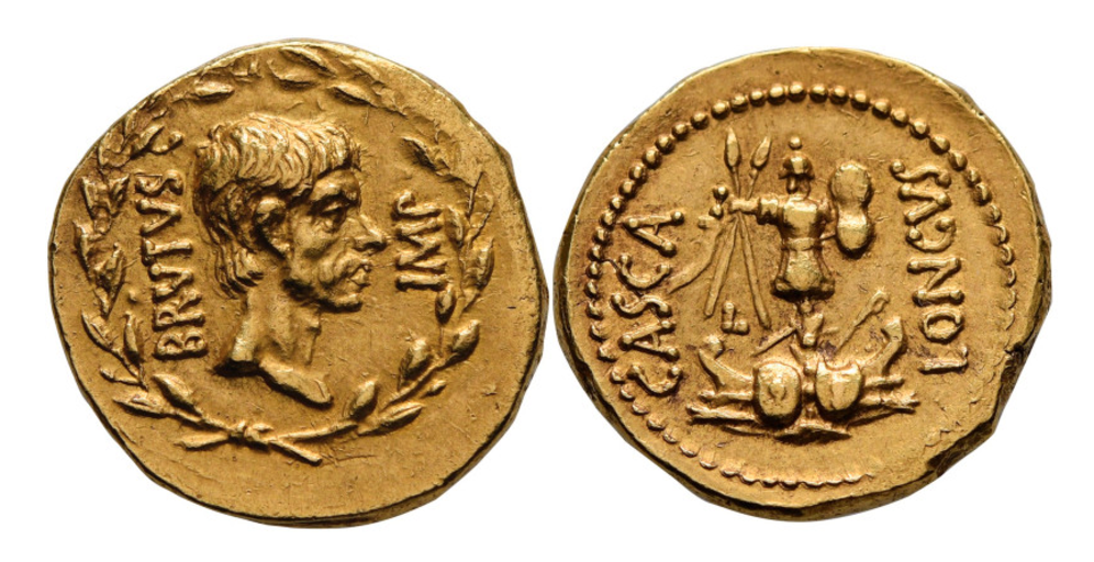 Ett historisk mynt från Romarriket såldes på måndagen på auktion i Genève för 1,98 miljoner euro, motsvarande 23 miljoner kronor. Myntet pryds av Brutus och kommer från 43 eller 42 år före Kristus, skriver AFP.