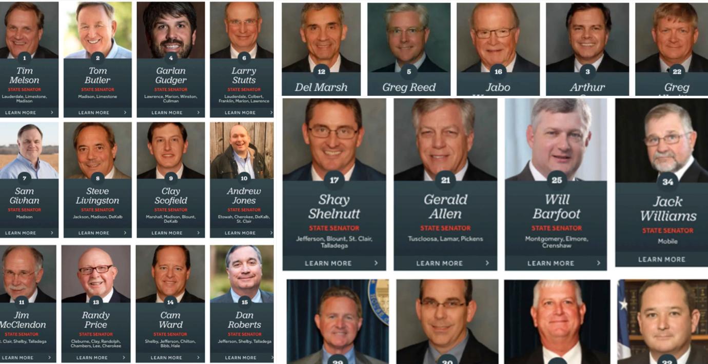 De 25 republikaner i Alabamas senat som röstade igenom USA:s strängaste abortlagar är alla vita män, något som uppmärksammats av flera medier. Två republikaner valde att inte rösta.