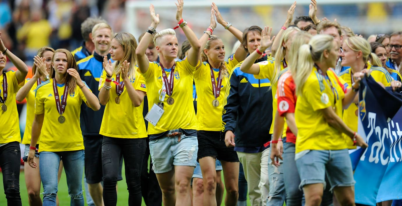 Finalen i fotbolls-EM i all ära. Det här mästerskapet har varit det svenska landslagets turnering. När det blev halvtidspaus i finalen mellan Norge och Tyskland klev svenskorna in på planen. Då ställde sig 44 000 åskadare upp och hyllade det folkkära landslaget.