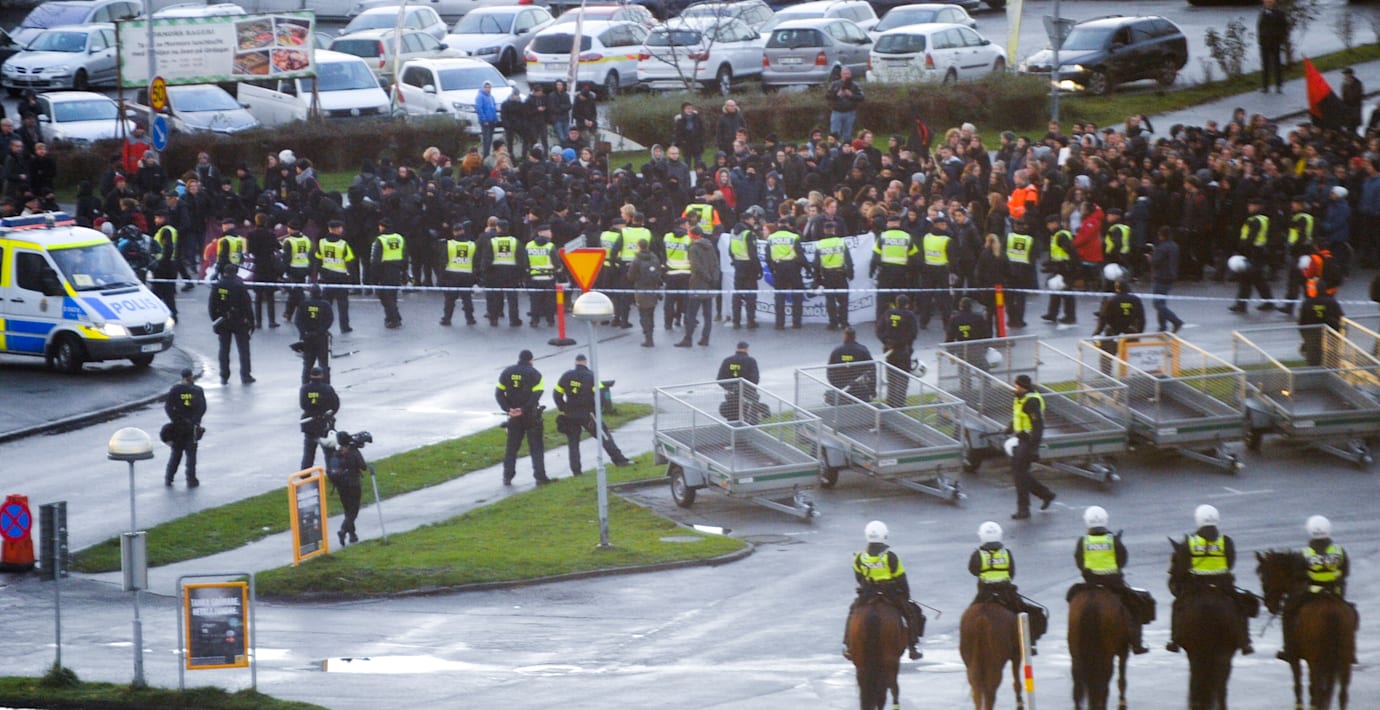Omkring 400 personer demonstrerade under lördagen mot Sverigedemokraternas landsdagar i Lund. Enligt polisen gick det mestadels lugnt till. Men ett 50-tal svartklädda och maskerade demonstranter försökte bryta igenom avspärrningarna när tåget kommit fram till hotellet där SD-mötet pågår. De slogs tillbaka av polisen.