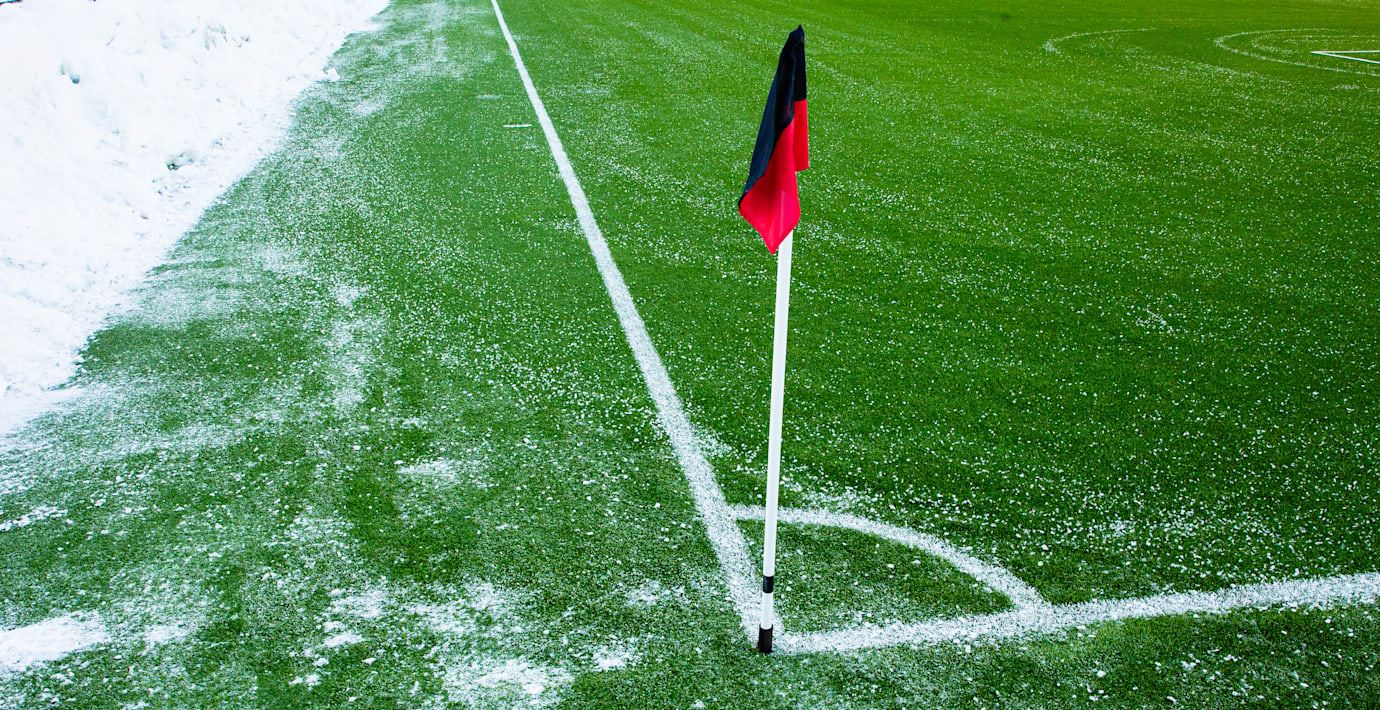 Planen blev snöfri vid 13-tiden. Avspark är klockan 15.00.