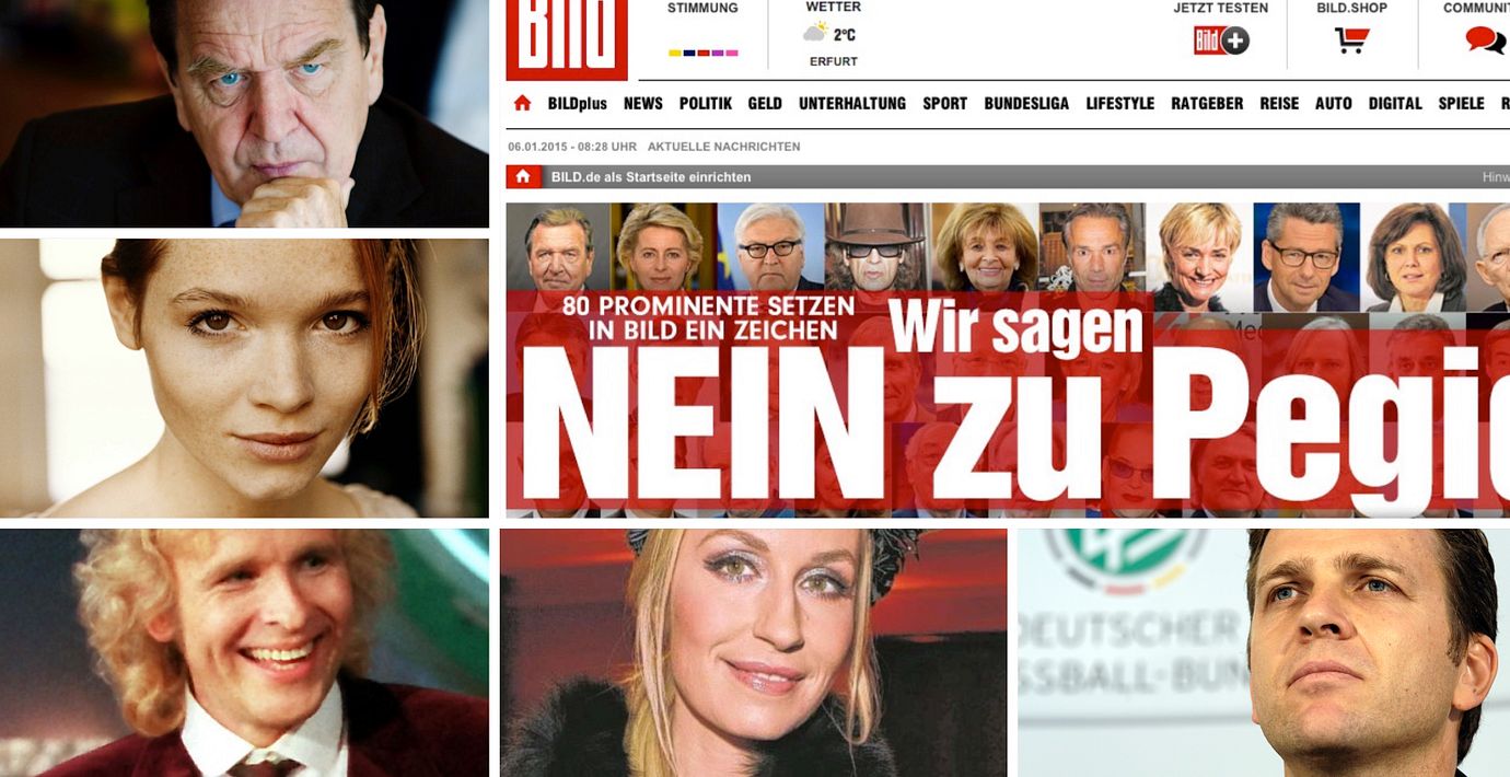 I en storsatsning i tidningen Bild kräver nu 80 av Tysklands absolut största kändisar att de antimuslimska marscherna upphör.