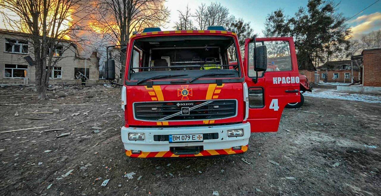 Ukrainas president Volodymyr Zelenskyj uppger i sin dagliga uppdatering på sociala medier att skolan och bostadshusen var epicentret för attacken.