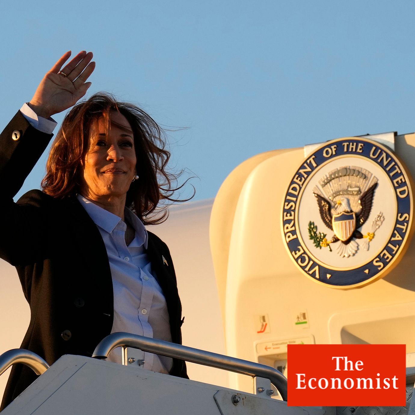 Democratic presidential nominee Vice President Kamala Harris waves as she boards Air Force Two at Pittsburgh International Airport in Pittsburgh, Monday, Sept. 2, 2024. (Jacquelyn Martin / AP)