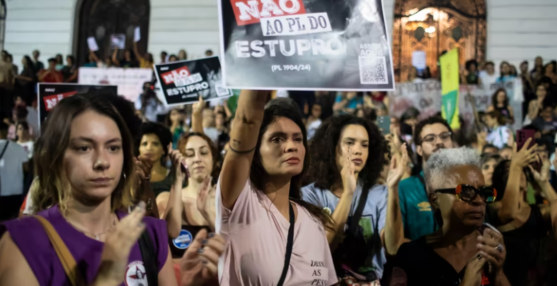 Ett nytt lagförslag i Brasilien innebär att alla aborter efter vecka 22 ska jämställas med mord. Tusentals har samlats i brasilianska storstäder för att protestera mot förslaget, skriver TT.