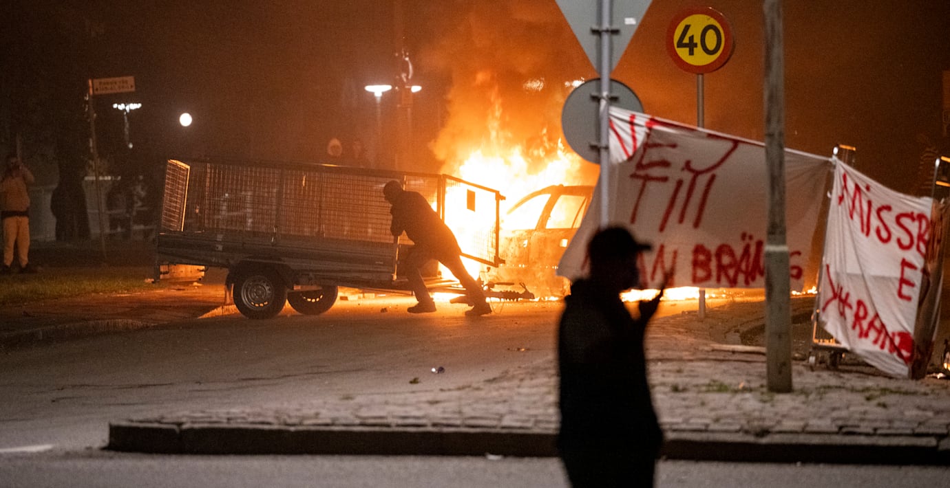 Samtidigt har ingen person ännu frihetsberövats för det upplopp som bröt ut i stadsdelen Rosengård några timmar senare, då ett 20-tal bilar sattes i brand och sten kastades mot polisens fordon. Malmöpolisens presstalesperson Nils Norling säger att man arbetar ”stenhårt” med utredningen och hoppas kunna göra gripanden inom kort.
