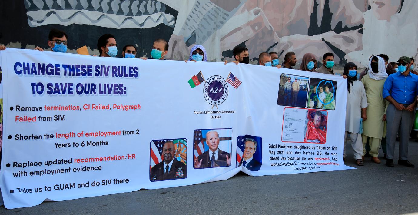 Totalt har över 18 000 afghaner arbetet för USA under det 20 år långa kriget. I många fall hotas de nu att straffas av talibanerna som på nytt har tagit kontroll över stora delar av landet.