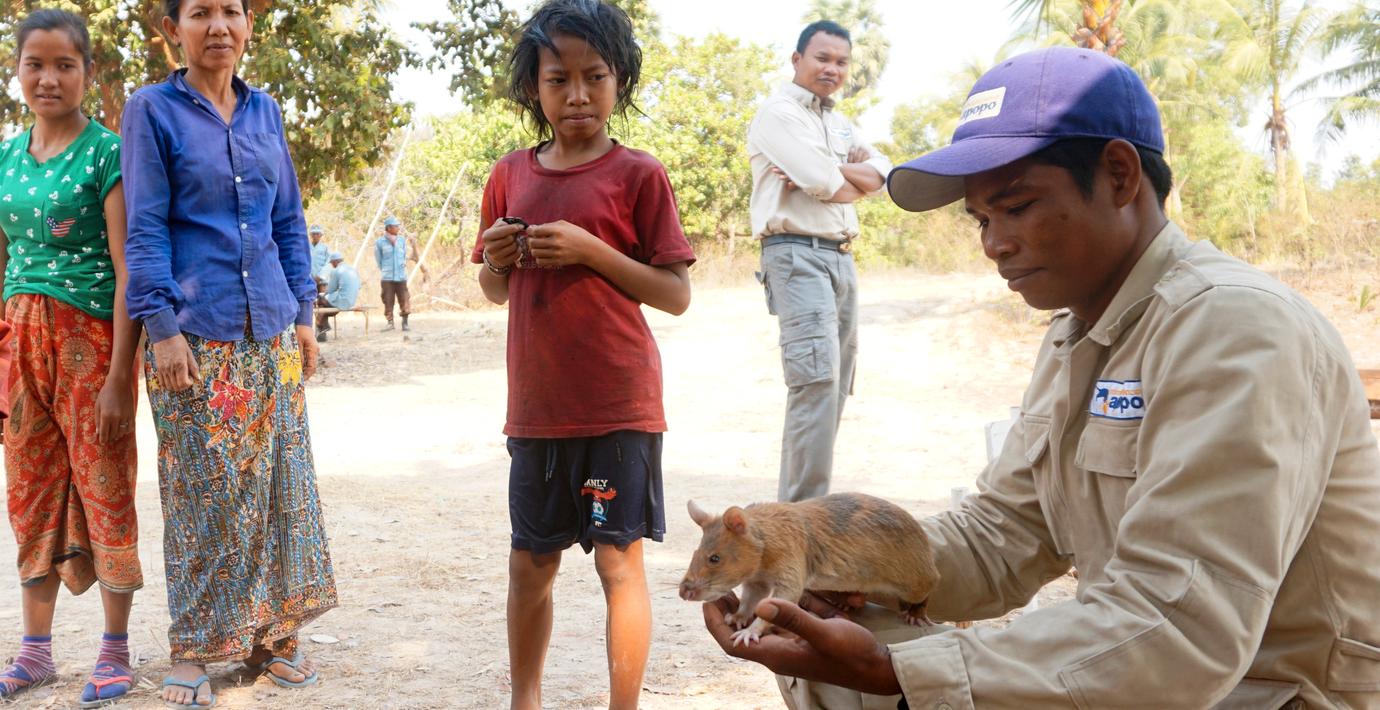 Många människor har lämnat den kambodjanska byn Trach på grund av alla landminor som ligger utspridda i marken – och 15 invånare har dött. Nu har de hittat en lösning: Afrikanska råttor som kan lukta sig till och peka ut minorna, så att de kan desarmeras. Det rapporterar AP.
