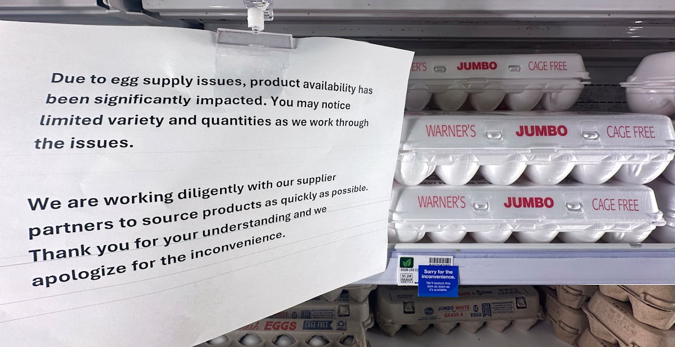 Bristen har orsakats av ett flera utbrott av fågelinfluensa och har lett till att äggpriserna stigit kraftigt. USA:s jordbruksdepartement bedömer att de kan öka med ytterligare drygt 20 procent i år.