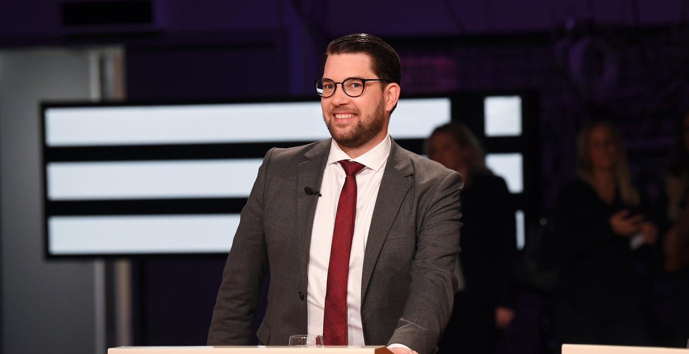 SD-ledaren Jimmie Åkesson vände ryggen till och lämnade tillfälligt sitt podium när han angreps av Vänsterpartiets Jonas Sjöstedt i SVT:s partiledardebatt i ”Agenda”.