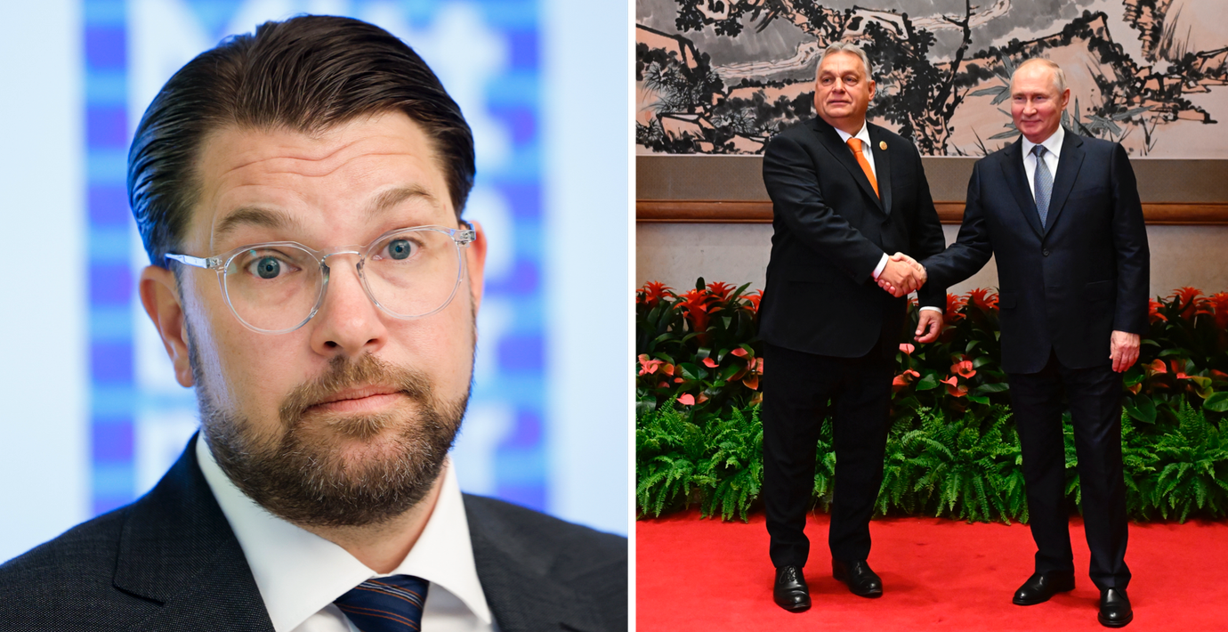 – Det är väldigt märkligt att Orbán skakar hand med Putin i den här situationen, säger Åkesson.