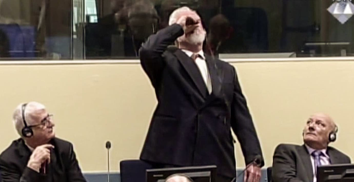 Flaskan som den dömde krigsförbrytaren Slobodan Praljak drack ur i FN:s krigsförbrytartribunal i Haag innehöll en dödlig kemikalie, enligt den nederländska åklagaren Marilyn Fikensche.