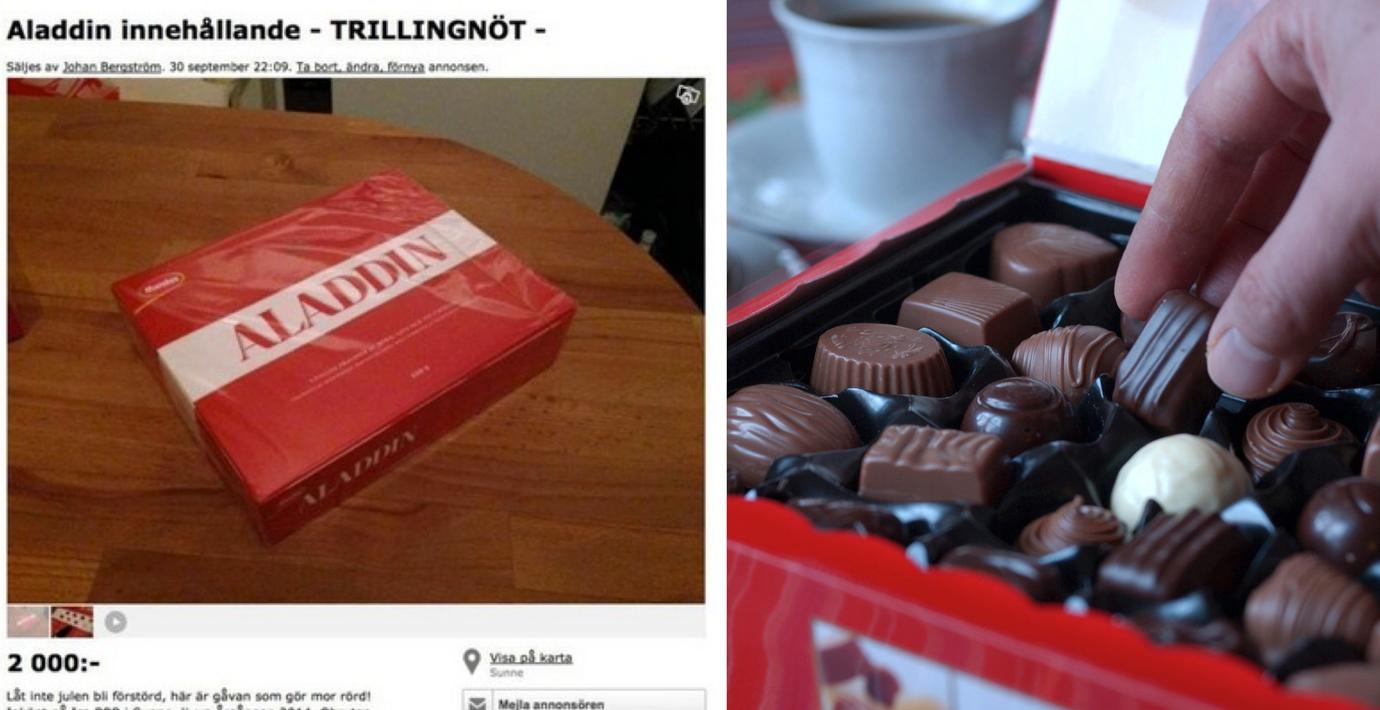 Svenskarna uppskattade inte Marabous beslut att plocka bort trillingnöten ur Aladdinasken. Nu har en oöppnad chokladask – med den kära nötpralinen kvar – sålts för 15 000 kronor, rapporterar Expressen.