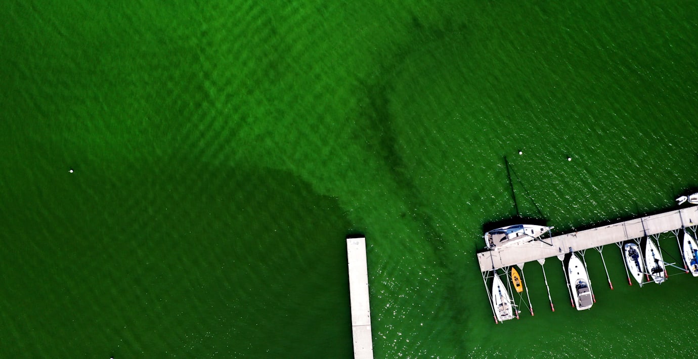 Algblomning, som kan vara farligt för både människa och djur, sker naturligt i sjöar och hav men riskerar att bli större och ske oftare på grund av övergödning.