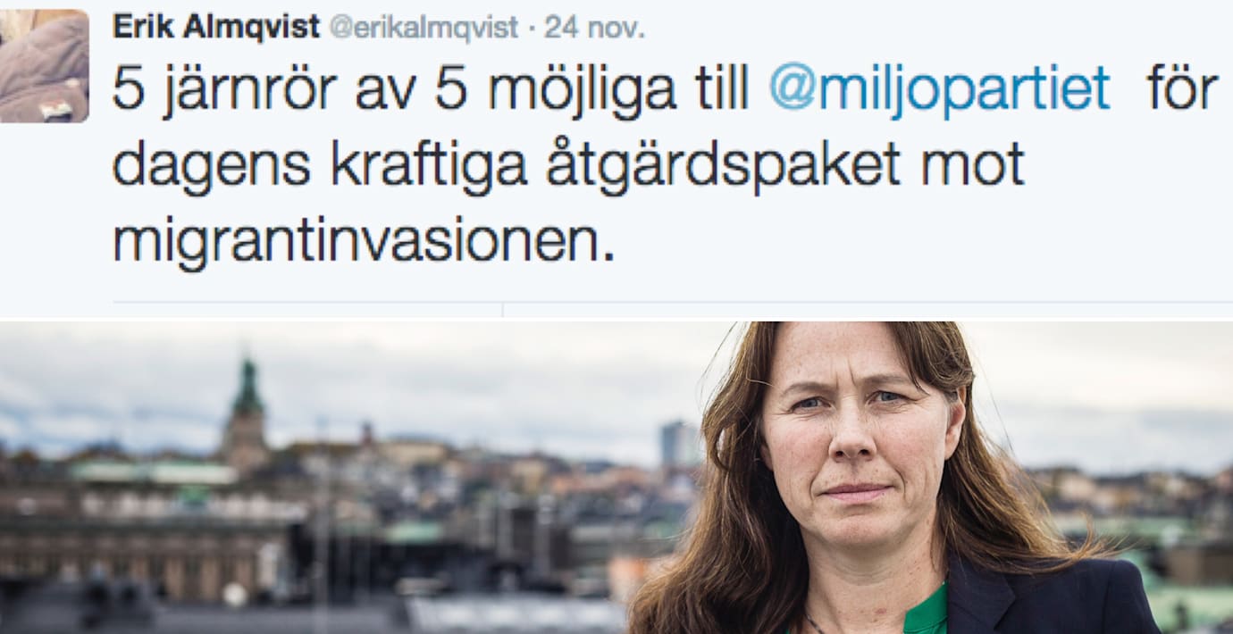 ”5 järnrör av 5 möjliga till miljöpartiet för dagens kraftiga åtgärdspaket mot migrantinvasionen” skrev han på Twitter efter gårdagens presskonferens.