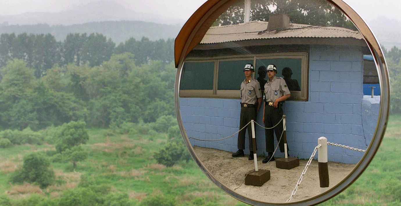 Personen deltog i en rundtur i en gränsby i den demilitariserade zonen som skiljer Nord- och Sydkorea åt. Militärer från båda länder vaktar zonen.
