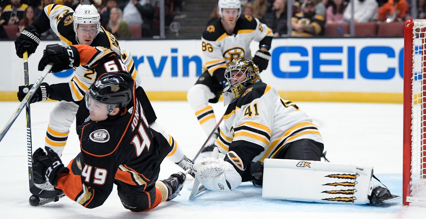 Anaheim Ducks förlorade med 3–0 på hemmaplan mot Boston Bruins. Ingen av Ducks fyra svenskar lyckades överlista en storspelande Jaroslav Halak i Bruins-målet, som stoppade 30 skott.