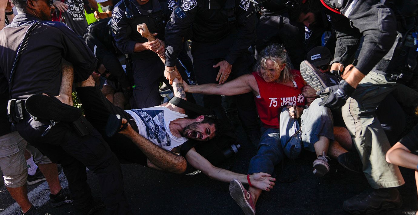 Det nämns inte heller av motståndarna, skriver han, därför att de ”inte kan definiera vad en israelisk demokrati är om den fortsätter styra odemokratiskt över miljoner palestinier”.