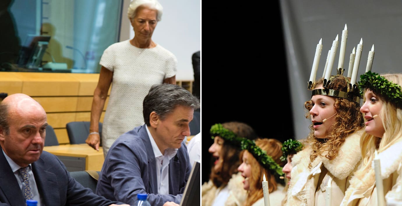 I en analys liknar SVT:s ekonomiske kommentator Peter Rawet situationen vid dagens eurogruppmöte om den grekiska skuldkrisen vid ett luciatåg. ”Precis som på dagis där det vimlar av lucior (tärnor syns ej till) så måste alla runt förhandlingsbordet i Bryssel ha något med sig hem till sina väljare”, skriver han. Under lördagens möte är långivarna ute efter bevis på att grekerna inte glider på en räkmacka samtidigt som Grekland vill ha med sig en nedskrivning av sina skulder, menar Rawet.
