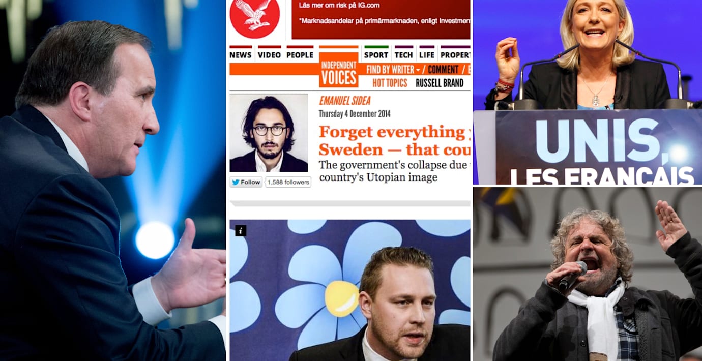 Detta scenario hotar hela Europa när populistiska partier – från UKIP och 'de där svenskarna' till Marine Le Pen och Italiens Beppe Grillo – leder så kallade bondeuppror mot traditionella partier som visat mindre lyckade grepp mot de ekonomiska omvälvningarna”.