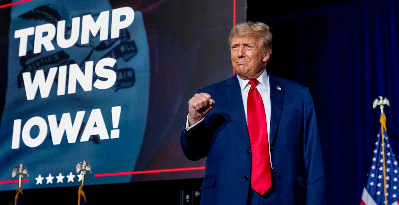 Donald Trump sopade mattan med motståndet i primärvalet i Iowa och hans främste motståndare Nikki Haley gjorde ett svagt val och slutade trea, bakom både Trump och Ron DeSantis.