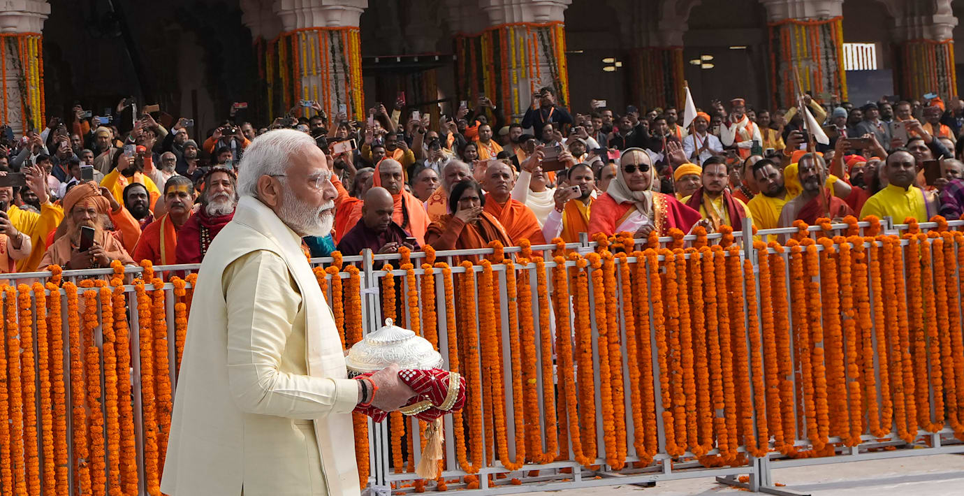 Indiens premiärminister Narendra Modi gjorde invigningen av det kontroversiella hinduiska templet till en nationell angelägenhet – och gjorde det mycket tydligt att han själv är hindu. Det skriver Neerja Chowdhury i en analys i Indian Express om templet som byggts där en 1500-talsmoské brukade stå.