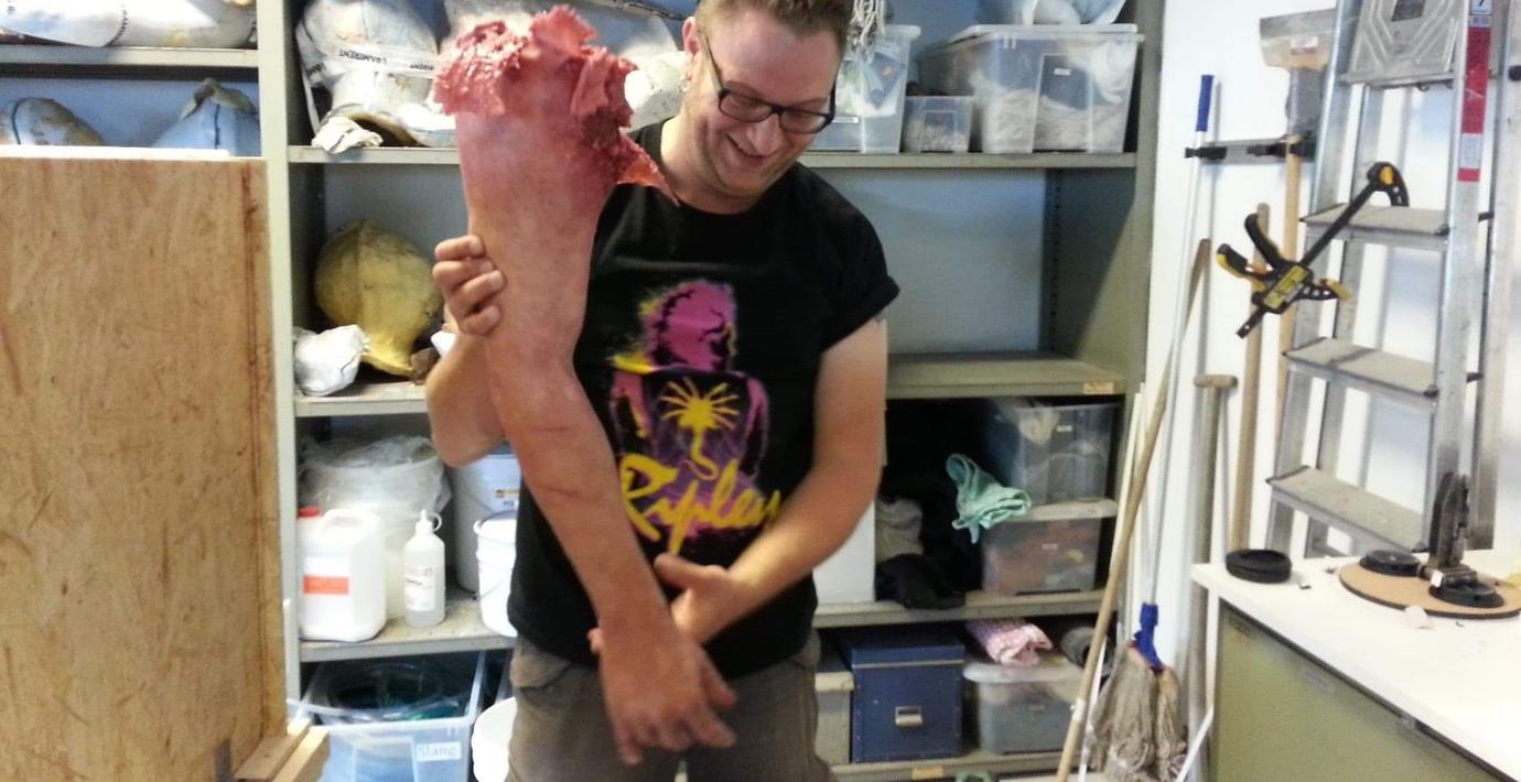 ”Kroppsdelen” som hittades i en bil i Angered och som ledde till att två personer anhölls misstänkta för mord under torsdagen var egentligen stulen filmrekvisita. Attributmakaren Anders Muammar hade fått sin fejkarm stulen.