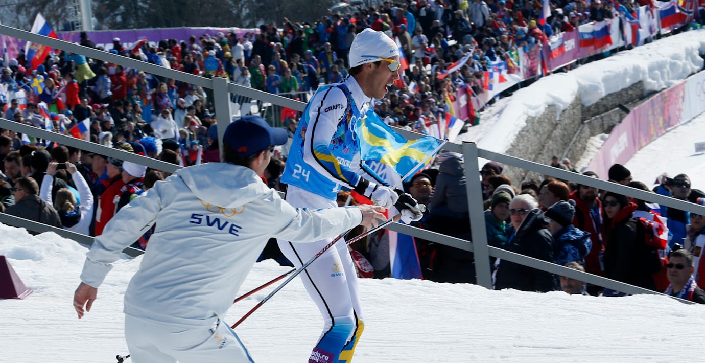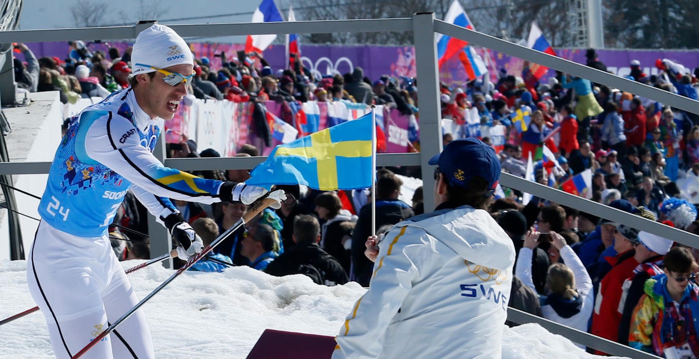 Vems var handen som räckte Marcus Hellner den svenska flaggan inför målgången?