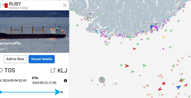Flera medier rapporterar på söndagsmorgonen att MV Ruby för närvarande ligger stilla utanför Norges kust på internationellt vatten.