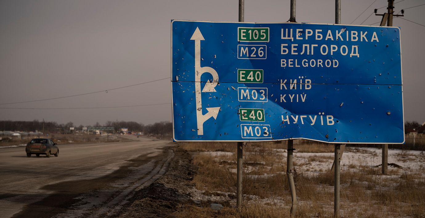 Rysslands krig i Ukraina spiller över på de egna invånarna. Här ses en beskjuten vägskylt i Ukraina som visar riktningen till Belgorod. (Vadim Ghirda / AP)