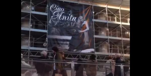 Kulturdepartementet i Rom hyllade i dag den avlidna skådespelerskan Anita Ekberg med en enorm banderoll som hängdes upp vid platsen som skrev in henne i historien: Fontana di Trevi.