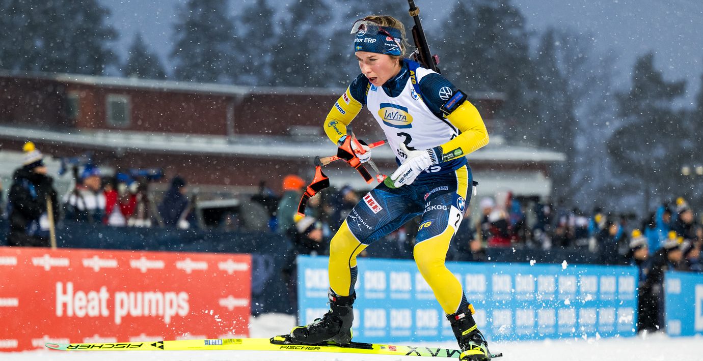 Svenska Anna Magnusson kom trea i söndagens jaktstart i skidskytte i Östersund.