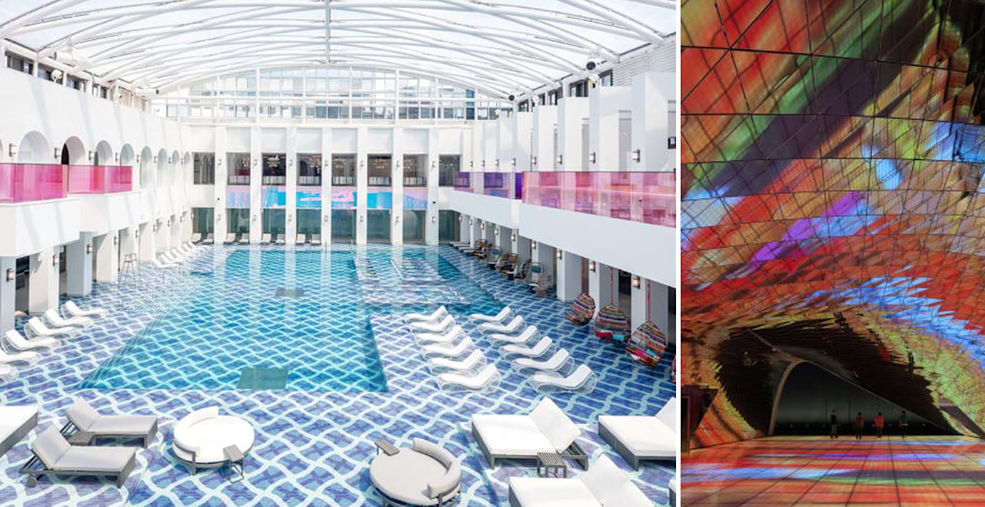 En upplyst regnbågstunnel leder in i hotellets atrium med sydkoreanska pryl- och designaffärer och en årlig julmarknad som är minst lika stor som i städerna längs Donau. I andra änden ligger nordöstra Asiens största nattklubb, en hel nöjespark för ungarna och diverse pooler, kasinon och gallerier.