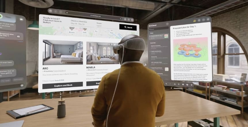 Headsetet kan användas för att interagera med 3D-objekt på en mängd olika sätt, och Apple visade under presentationen upp hur headsetet kan användas till allt ifrån produktivitet till underhållning.