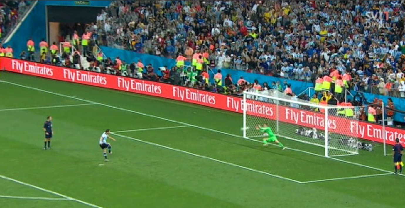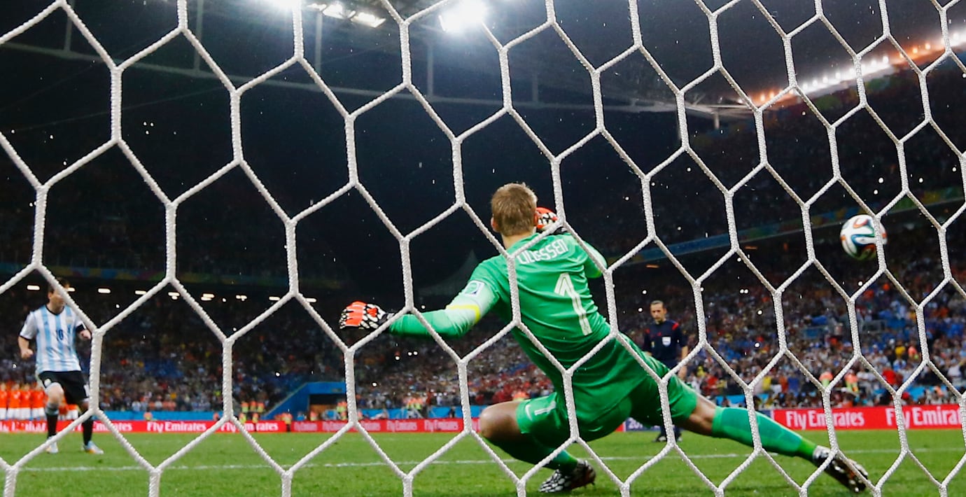 Målvakten Sergio Romero blev stor hjälte när Nederländerna besegrades på straffar efter 0–0 i semifinalen i São Paulo. Resultatet blev 4–2.