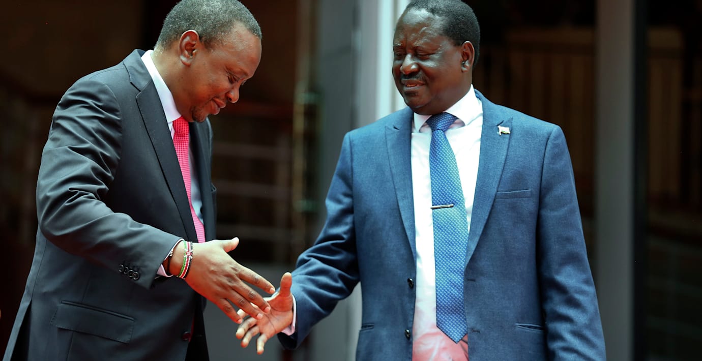 Ärkerivalerna kramas och skakar hand för enat Kenya
