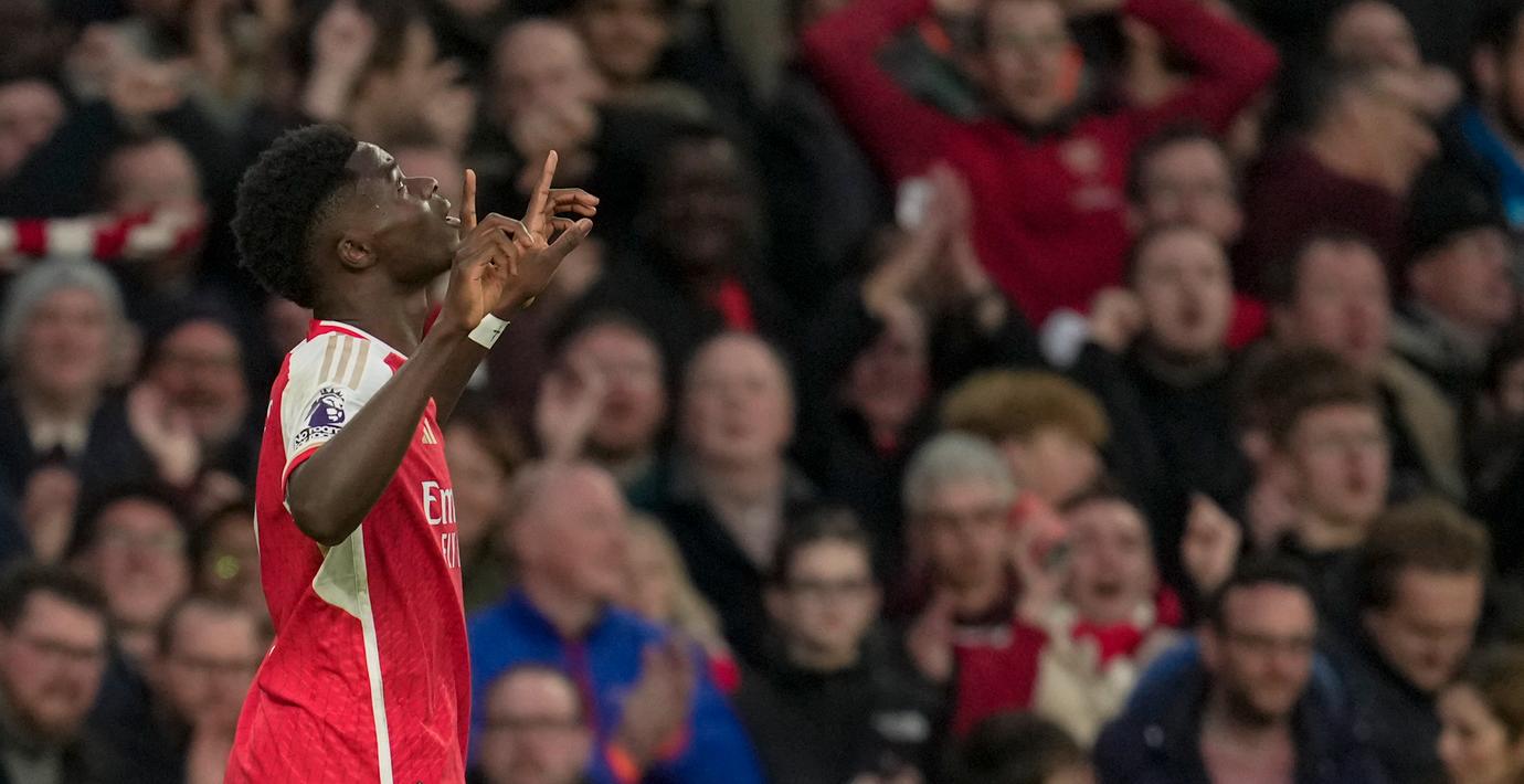 Bukayo Saka gav Arsenal ledningen efter 14 minuter men strax innan pausvilan tabbade sig Arsenal-försvaren Gabriel när han stötte in bollen med handen i eget mål.