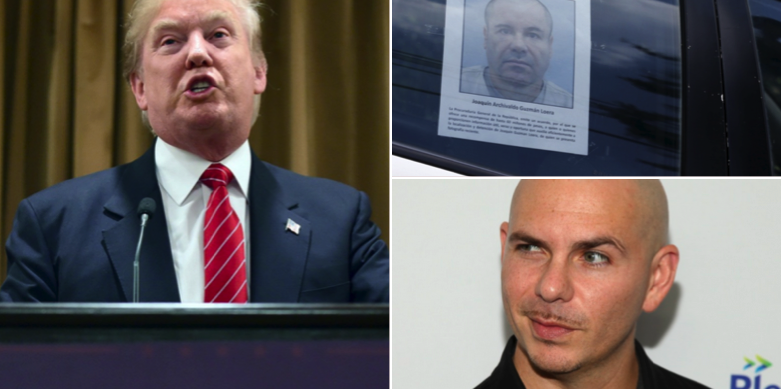 Den amerikansk-kubanske hiphop-artisten Pitbull uppmanar till bojkott av presidentkandidaten och fastighetsmagnaten Donald Trumps hotell, och passar samtidigt på att varna honom för den mexikanske knarkkungen El Chapo som nyligen rymde från ett fängelse utanför Mexico City.