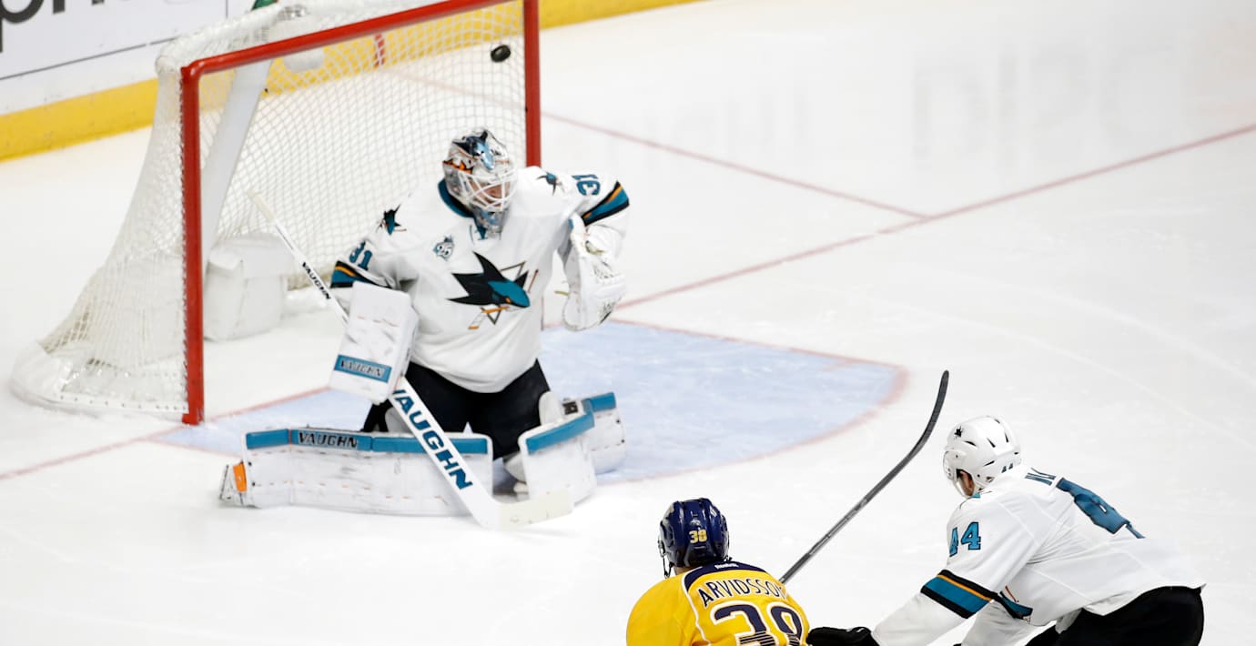 Viktor Arvidsson blev stor hjälte i natt när Nashville tar kvartsfinalserien mot San José till en sjunde match. Två minuter in i sudden death snappade svensken upp pucken i offensiv zon och stänkte in ett backhand-skott i mål från flera meters avstånd.
