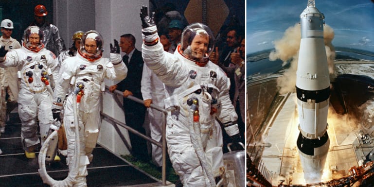 I dag för 50 år sedan sköts astronauterna Neil Armstrong, Buzz Aldrin och Michael Collins upp till månen.