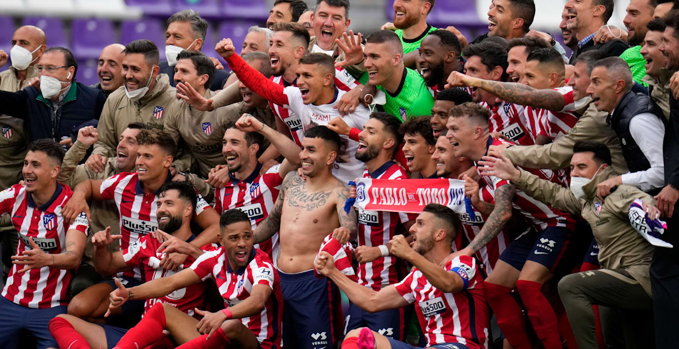 Atlético Madrid är spanska mästare i fotboll. Laget säkrade titeln genom att vända underläge till seger 2–1 borta mot Real Valladolid. Därmed hjälpte det inte utmanaren om titeln, stadsrivalen Real Madrid, att även de vände ett underläge till seger i sin match mot Villareal.