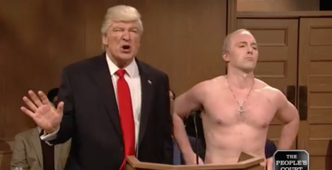 Komikern Alec Baldwin var tillbaka som gästande programledare för det amerikanska satirprogrammet Saturday Night Live. Och han gjorde comeback som Donald Trump. I en sketch försvarade han inreseförbudet i domstolen från reality-programmet ”The people’s court”. Som karaktärsvittne hade han kallat sin kompis Vladimir Putin.