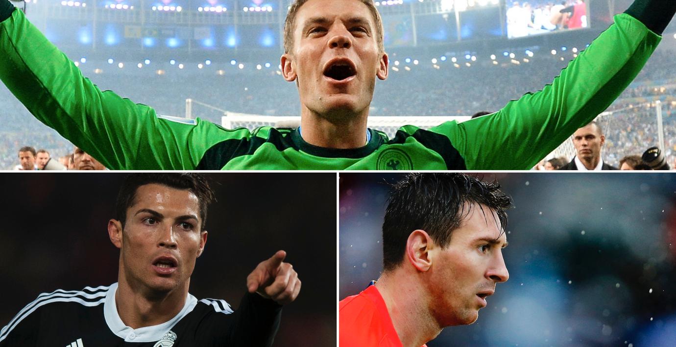 När 73 experter från 28 olika länder får lägga totalt 2 920 röster på vilka de anser vara världens främsta fotbollsspelare hamnar en bekant trio i topp. Den tyske landslagsmålvakten Manuel Neuer på tredje plats, Argentinas stjärna Lionel Messi på andra plats och Real Madrids Christiano Ronaldo i topp, enligt The Guardians sammanställning.